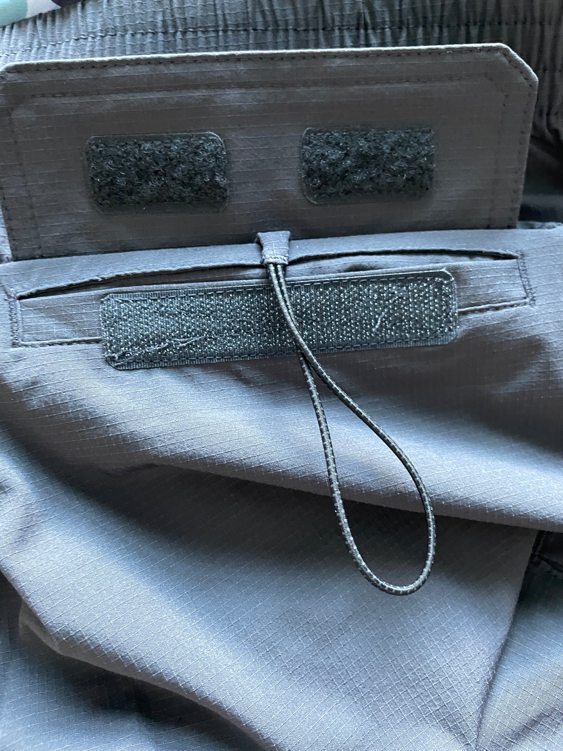 - Pocket: Two side pockets & two back pockets with velcro flap, with water drainage eyelet and interior drawstring loop. Plus right leg side pocket with zipper and zipper pull
