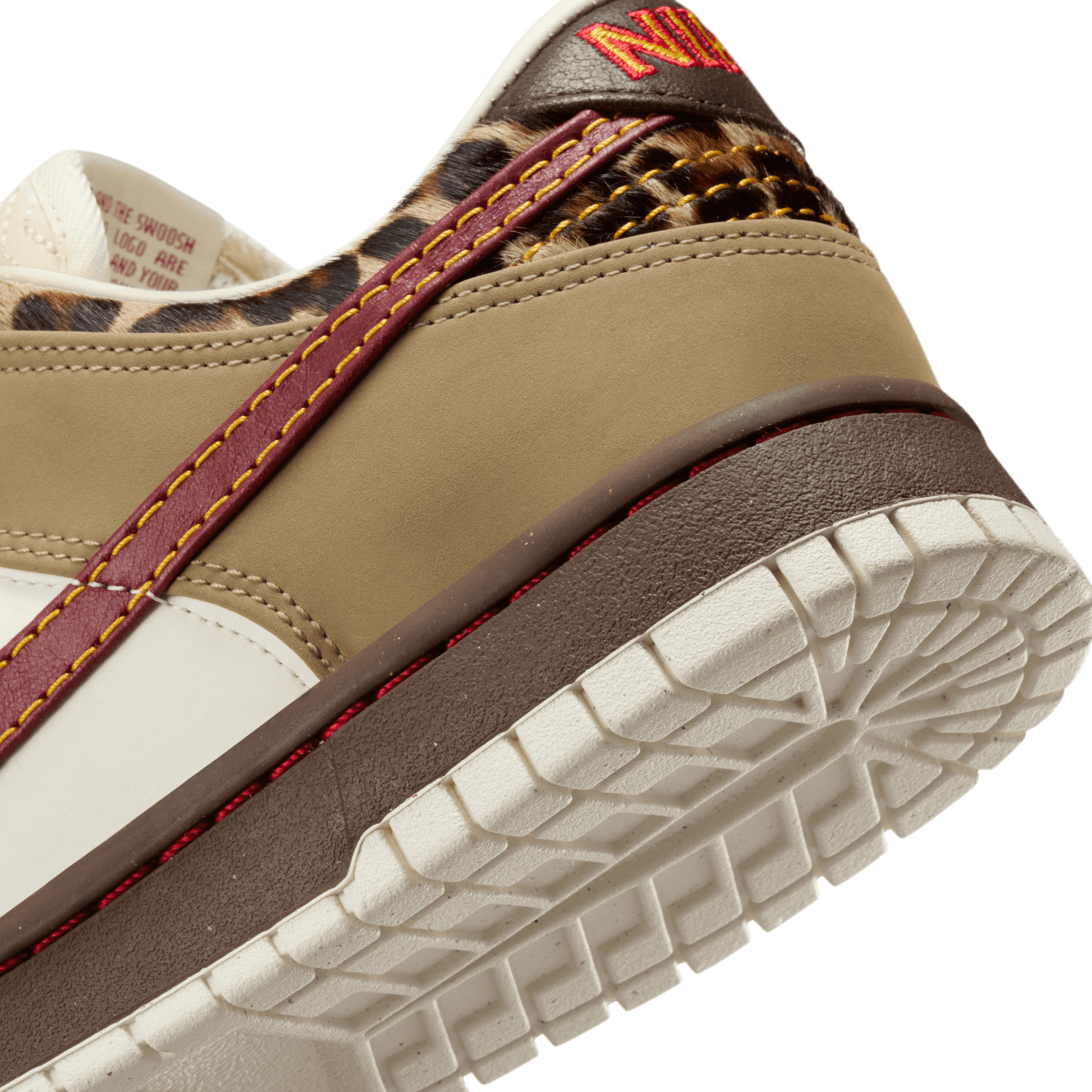 You can always count on a classic. This Dunk Low features a sleek leather upper with leopard accents for a fierce look. And like all Dunks, it has plush padding for game-changing comfort that lasts.